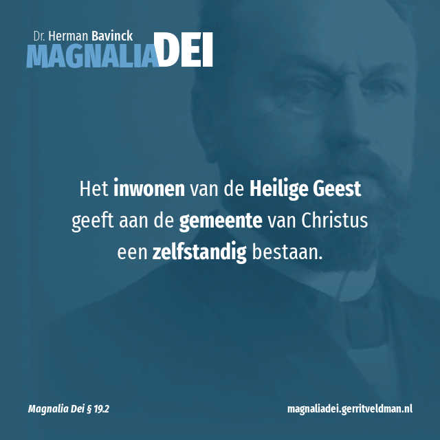 Dezelfde uitdrukking komt ook al eerder voor, Ex. 31:3, Micha 3:8, Luk. 1:41 maar het verschil ligt toch voor de hand. Terwijl de Heilige Geest vroeger aan enkele, op zichzelf staande personen, en tijdelijk, voor een bepaald doel, geschonken werd, daalde Hij nu neer op alle leden van de gemeente en blijft Hij nu voortaan in hen allen wonen en werken. Net zoals de Zoon van God in de dagen van het Oude Testament wel meerdere keren op aarde verscheen, maar pas bij de ontvangenis in Maria’s schoot de menselijke natuur blijvend uitkoos als zijn woning, zo was er ook vroeger wel allerlei activiteit en gave van de Heilige Geest, maar pas op de Pinksterdag maakt Hij de gemeente zijn tempel, die Hij voortdurend heiligt en opbouwt en nooit meer verlaat. Het inwonen van de Heilige Geest geeft aan de gemeente van Christus een zelfstandig bestaan. Ze is nu niet meer tot het volksbestaan van Israël en binnen de grenzen van Palestina beperkt, maar ze leeft nu zelfstandig door de Geest, die in haar woont, en breidt zich over heel de aarde uit. Uit de tempel op Sion gaat God door zijn Geest nu wonen in het lichaam van de gemeente van Christus. En de gemeente wordt daardoor op deze zelfde dag geboren als zendingskerk en wereldkerk. De hemelvaart van Christus heeft noodzakelijk het neerdalen van de Heilige Geest tot gevolg en bewijst daarin haar echtheid. Zoals de Geest eerst de Christus door het lijden heen geheiligd, volmaakt, tot de hoogste hoogte opgevoerd heeft, zo hoort Hij nu op dezelfde manier en langs dezelfde weg het lichaam van Christus te vormen, totdat het zijn volle bloei verkrijgt en de vervulling, het pleroma, uitmaakt van Hem die alles in allen vervult.