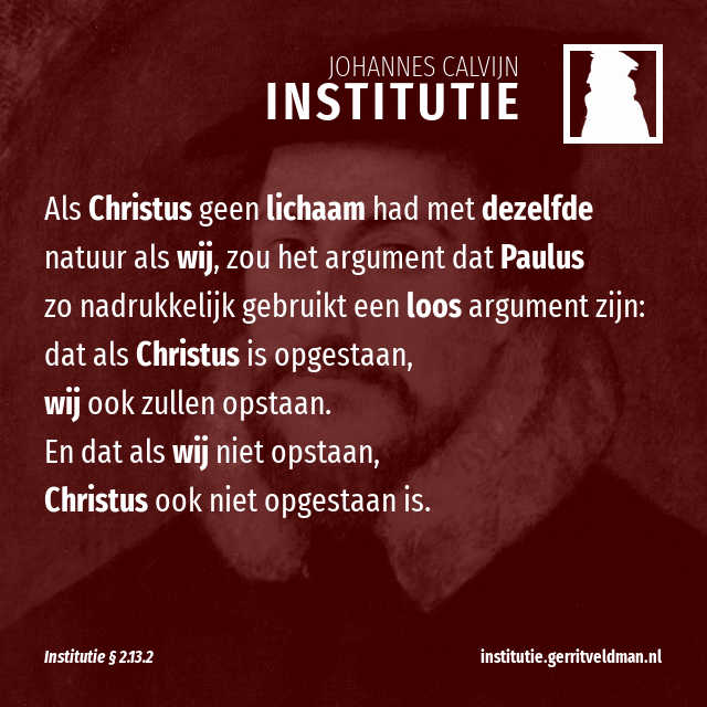 Anders zou ook niet overeind blijven wat ik al aangehaald heb: Christus deelde in vlees en bloed om kinderen voor zich bij elkaar te brengen die God zouden gehoorzamen. Hebreeën 2:14-15 Door die woorden wordt openlijk gezegd dat Christus als medemens samen met ons deelt in dezelfde natuur. En hetzelfde bedoelt de apostel als hij zegt dat zowel degene die heiligt als degenen die geheiligd worden dezelfde oorsprong hebben. Ook dat slaat op het delen in dezelfde natuur. Dat blijkt uit de context. Want meteen daarna zegt de apostel: ‘Daarom heeft Hij zich er niet voor geschaamd om hen broers te noemen.’ Hebreeën 2:11 Want als hij met de eerste woorden bedoeld had dat de gelovigen uit God voortkomen, welke reden zou Christus dan gehad hebben om zich te schamen? Dat was immers een grote eer. Maar in zijn onmetelijke genade voegt Christus zich bij verachtelijken en onaanzienlijken. Daarom wordt er over Hem gezegd dat Hij zich niet schaamt.