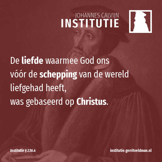 En daarom zegt Paulus dat de liefde waarmee God ons vóór de schepping van de wereld liefgehad heeft, gebaseerd was op Christus. Efeziërs 1:4 Dit is helder en in overeenstemming met de Schrift. Het verbindt heel mooi de passages met elkaar waar de Schrift zegt dat God zijn liefde voor ons heeft laten zien door zijn eniggeboren Zoon over te geven aan de dood Johannes 3:16 en dat Hij toch onze vijand was vóór Hij door de dood van Christus met ons verzoend was. Romeinen 5:10