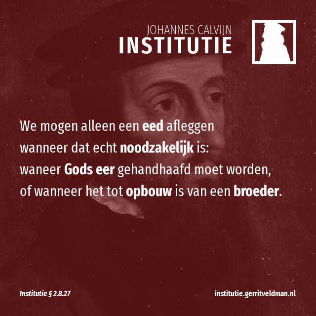 Ik weet dus geen betere regel dan deze: we moeten het afleggen van een eed zo beperken, dat we niet zomaar zweren, niet lukraak, niet wanneer we daar maar zin in hebben en niet als het niet belangrijk is. We mogen alleen een eed afleggen wanneer dat echt noodzakelijk is: wanneer Gods eer gehandhaafd moet worden, of wanneer het tot opbouw is van een broeder. Dat is de bedoeling van dit gebod.