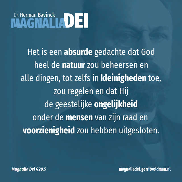 Afgezien van het onderwijs van de Heilige Schrift, is deze verklaring echter al op zichzelf volstrekt onaannemelijk. Volgens deze verklaring zou het niet God, maar zouden het de mensen zijn die tussen elkaar onderscheid maken. Maar als God God is, dan ligt daarin opgesloten dat zijn raad over alle dingen gaat, dat Hij de Schepper van hemel en aarde is en dat Hij door zijn voorzienigheid alle schepselen onderhoudt en regeert. Het is een absurde gedachte dat Hij heel de natuur zou beheersen en alle dingen, tot zelfs in kleinigheden toe, zou regelen en dat Hij het grote, alles beheersende en tot in de eeuwigheid toe doorwerkende feit van de geestelijke ongelijkheid onder de mensen van zijn raad en voorzienigheid zou hebben uitgesloten en aan de mensen zou hebben overgelaten om zelf te beslissen. Wie deze gedachte koestert, doet in principe Gods raad en voorzienig bestel teniet, onttrekt heel de wereldgeschiedenis aan Gods hand, maakt haar uitkomst wisselvallig, berooft haar van haar bestemming en doel en schrijft aan God een met zijn wezen en werken strijdige, een passieve en afwachtende houding toe.