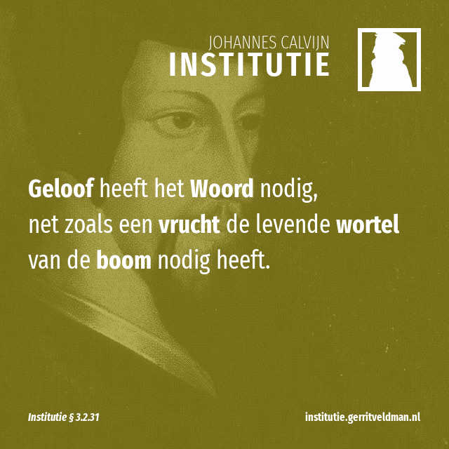 Hieruit concludeer ik opnieuw, wat ik eerder al heb uitgelegd: geloof heeft het Woord nodig, net zoals een vrucht de levende wortel van de boom nodig heeft. Want David getuigt dat je alleen op God kunt hopen als je zijn naam kent. Psalm 9:11 Maar die kennis komt niet op uit ieders verbeelding. God getuigt zelf van zijn goedheid. Dezelfde profeet bevestigt dat ergens anders: ‘Laat uw redding mij overkomen volgens uw uitspraak.’ En: ‘Ik heb gehoopt op uw woord. Red mij.’ Psalm 119:40-42 We moeten hier letten op het verband tussen geloof en het Woord en vervolgens op de redding als het resultaat daarvan.