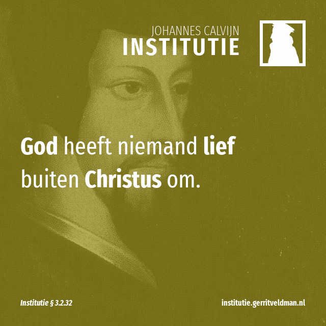 Maar het staat buiten kijf dat God niemand liefheeft buiten Christus om. Hij is de geliefde Zoon. In Hem woont en op Hem rust de liefde van de Vader. Mattheüs 3:17; 17:5 Van Hem uit stort die liefde zich vervolgens uit over ons. Want Paulus leert dat wij de genade gekregen hebben ‘in de geliefde’. Efeziërs 1:6 Door zijn tussenkomst moet Gods liefde naar ons toegebracht worden. Daarom noemt de apostel Hem ergens anders onze vrede Efeziërs 2:14 en nog weer ergens anders stelt hij Hem voor als de band die God in zijn vaderliefde met ons verbindt. Romeinen 8:3-17 Dat betekent dus dat we onze ogen op Hem moeten richten, telkens als ons een belofte wordt aangeboden. Terecht leert Paulus dat in Hem alle beloften van God bevestigd en vervuld worden. Romeinen 15:8