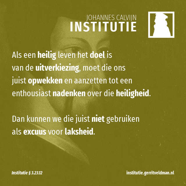 Maar zij gaan met hun laster nog verder en zeggen dat je, als je door God verworpen bent, tevergeefs moeite doet om met een onschuldige en rechte levenswandel bij God in de gunst te komen. Maar uit deze bewering blijkt overtuigend dat ze heel onbeschaamd liegen. Want waar zou zo’n ijver anders uit voort kunnen komen dan uit de uitverkiezing? Immers, iedereen die bij het aantal van de verworpenen hoort, is een vat voor oneervol gebruik. Daarom houden zulke mensen niet op continu schanddaden te plegen, Gods woede tegen zich op te wekken en door duidelijke tekenen te bevestigen dat Gods oordeel over hen al geveld is. Het is dus absoluut niet zo dat ze zich daar tevergeefs tegen verzetten.