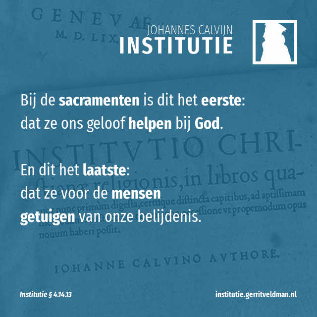 Ten slotte gebruiken sommigen het woord ‘sacrament’ als argument. Maar dat is absoluut geen overtuigend argument. Ze zeggen dat het woord ‘sacrament’ bij goede schrijvers weliswaar veel betekenissen heeft, maar dat slechts één betekenis past bij de tekenen. Deze betekenis: het duidt een plechtige eed aan die een soldaat aflegt aan zijn bevelhebber als hij in militaire dienst gaat. Want net zoals nieuwe soldaten door die krijgseed trouw zweren aan hun bevelhebber en verklaren dat ze dienst genomen hebben, zo erkennen wij met onze tekenen Christus als onze bevelhebber en verklaren wij dat we onder zijn vaandel dienen.