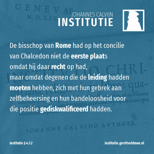 Daarna kwam het concilie van Chalcedon (451). Daar zaten de afgevaardigden van de kerk van Rome met toestemming van de keizer op de eerste plaats. Maar Leo I erkent zelf dat dit een buitengewoon privilege was. Want als hij keizer Marcianus1 en keizerin Pulcheria2 hierom vraagt, beweert hij niet dat hij er recht op heeft. Nee, hij gebruikt het voorwendsel dat de bisschoppen uit het Oosten, die op het concilie van Efeze de leiding hadden, toen alles in de war gebracht hadden en hun macht hadden misbruikt. Er was dus serieuze leiding nodig en het was niet waarschijnlijk dat degenen die de vorige keer zo lichtzinnig en oproerig geweest waren, daar geschikt voor waren. Daarom vraagt Leo of de leiding aan hem mag worden overgedragen, vanwege de gebreken en ongeschiktheid van anderen.