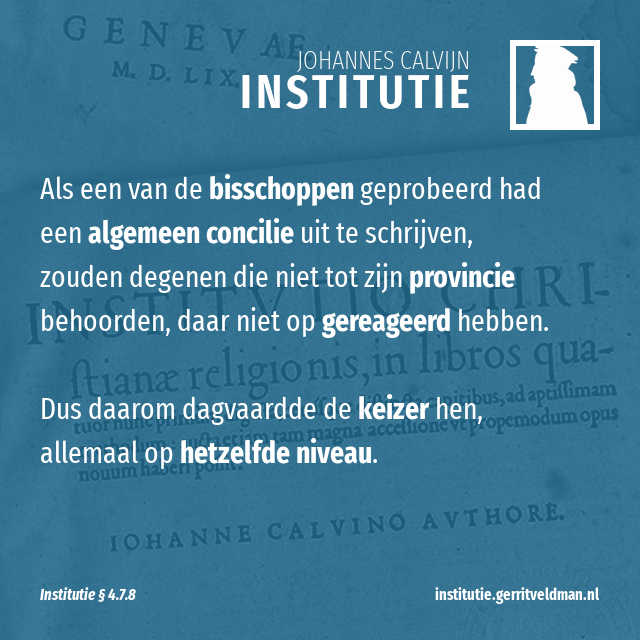 Wat betreft het samenroepen van synodes: elke bisschop van een provinciehoofdstad had de taak om op bepaalde momenten een provinciale synode bijeen te roepen. De bisschop van Rome had op dat punt geen enkel gezag. Echter, alleen de keizer kon een algemeen concilie uitschrijven. Want als een van de bisschoppen dat geprobeerd had, zouden degenen die niet tot zijn provincie behoorden, daar niet op gereageerd hebben. Er zou meteen beroering ontstaan zijn. Dus daarom dagvaardde de keizer hen, allemaal op hetzelfde niveau.