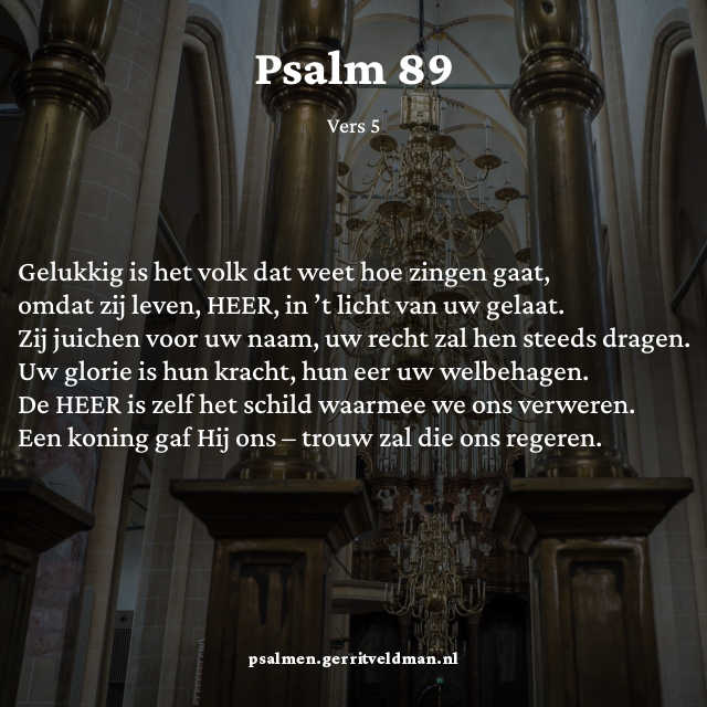 Uw troon rust op het recht, trouw blijft U liefde geven. - Gelukkig is het volk dat weet hoe zingen gaat,